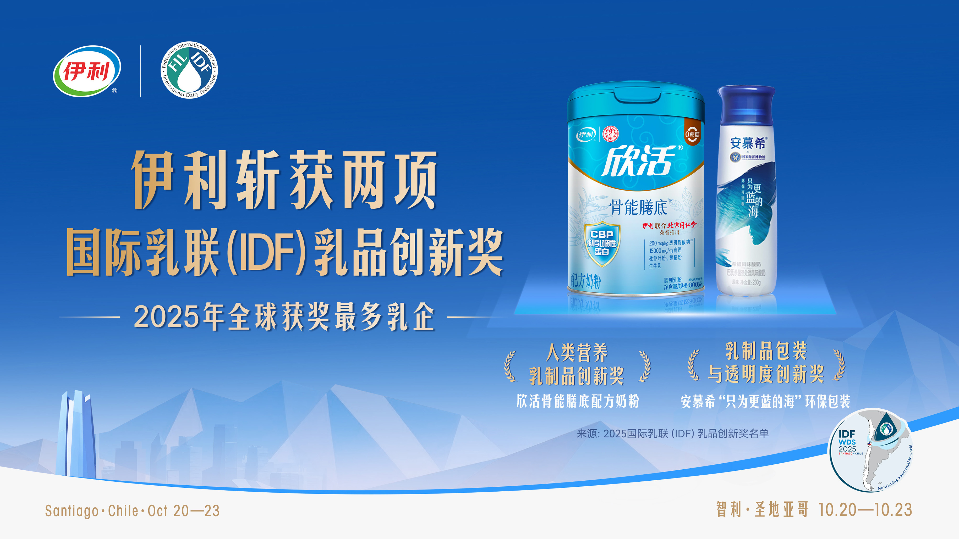 10月22日,伊利斩获两项被誉为全球乳业“奥斯卡”的IDF乳品创新奖,成为全球获奖最多的乳企以及唯一获奖的中国乳企。伊利携手北京同仁堂共创的欣活骨能膳底配方奶粉,荣获“人类营养乳制品创新奖”,产品聚焦国人骨·关·肌健康痛点,以“中式食养+精准营养”方案获得国际权威认可。安慕希“只为更蓝的海”限定环保包装也荣获“乳制品包装与透明度创新奖”,为行业提供了系统性的绿色包装解决方案。