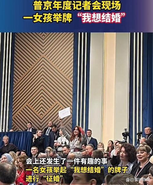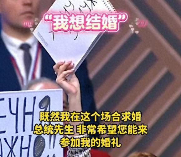 当天,来自叶卡捷琳堡的23岁记者基里尔·巴扎诺夫,身着笔挺正装,特意佩戴了寓意喜庆的红色领结,手中举着一块醒目的“我想结婚”标牌,在众多记者中格外引人注目。普京总统很快注意到了这块特殊的牌子,随即邀请他获得发言机会。令人意外的是,巴扎诺夫没有抛出预设的政治或经济问题,而是对着全国直播的镜头,深情告白:“我知道我的女朋友奥列奇卡现在正在看这场新闻发布会,亲爱的,你愿意嫁给我吗?”