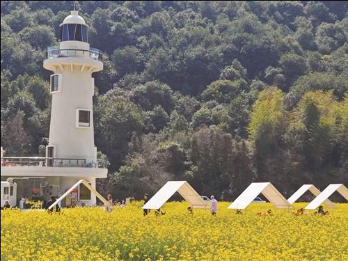 天台后岸村百亩桃林、朱莉农场樱花隧道、一舍繁花、清岚寨露营地等乡村休闲点位备受亲子与年轻群体欢迎,全县形成集自然观光、文化体验、潮流打卡、乡村度假、美食休闲于一体的全域旅游格局。