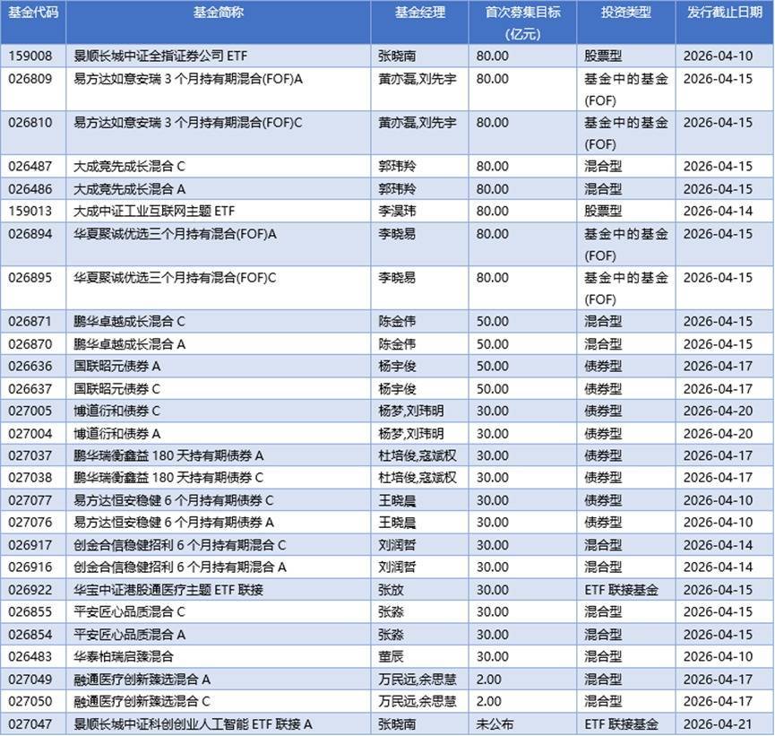 三、04月01日新发基金一览(不包含传统封闭式基金)
