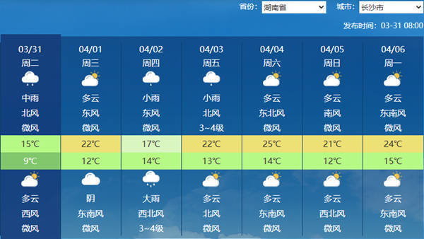 湖南各城市天气预报。(来源:中国天气网)